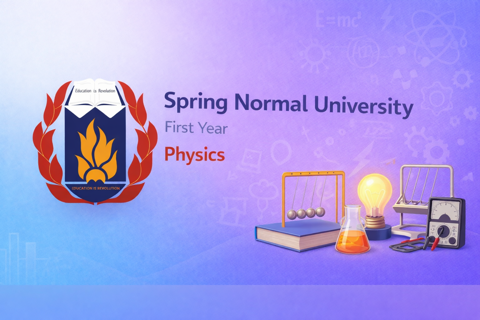 The Physics course introduces first-year B.Ed. students to the fundamental principles and concepts of physics. The course focuses on understanding the laws of nature that govern matter, energy, motion, and forces in the physical world.